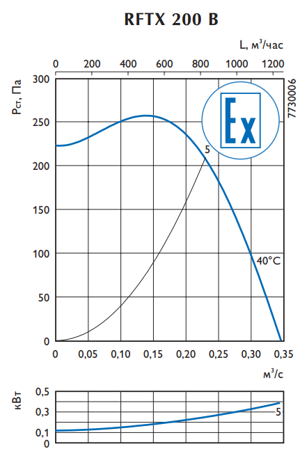 Центробежный взрывозащищенный вентилятор типа RFТХ оборудован вынесенным взрывозащищенным асинхронным двигателем с короткозамкнутым ротором и уплотненными подшипниками, что увеличивает срок их службы. Корпус вентилятора изготовлен из оцинкованной стали. Рабочее колесо вентилятора изготовлено из того же материала, что и корпус и проходит статическую и динамическую балансировку. Вентиляторы имеют загнутые вперед лопатки и выпускаются с односторонним всасыванием. Для обеспечения требования взрывозащищенности входной диффузор вентилятора выполнен искробезопасным и изготовлен из меди. Двигатель с рабочим колесом и корпусом вентилятора установлен на кронштейне, который позволяет быстро и просто закрепить вентилятор на стене, потолке или другом основании. Взрывозащищенные вентиляторы изготовлены в соответствии с требованиями ГОСТ 52350.0-2005, ГОСТ 52350.14-2006 и обеспечивают повышенный уровень безопасности в соответствии с требованиями 2ExeIIТ3 Х.